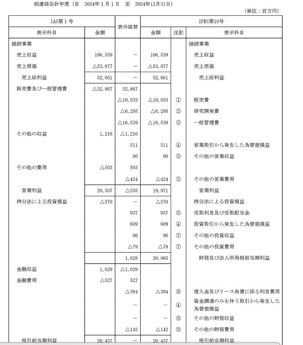 2027年3月期から、IFRS第18号の適用が義務付けられる。早期適用も可能である。